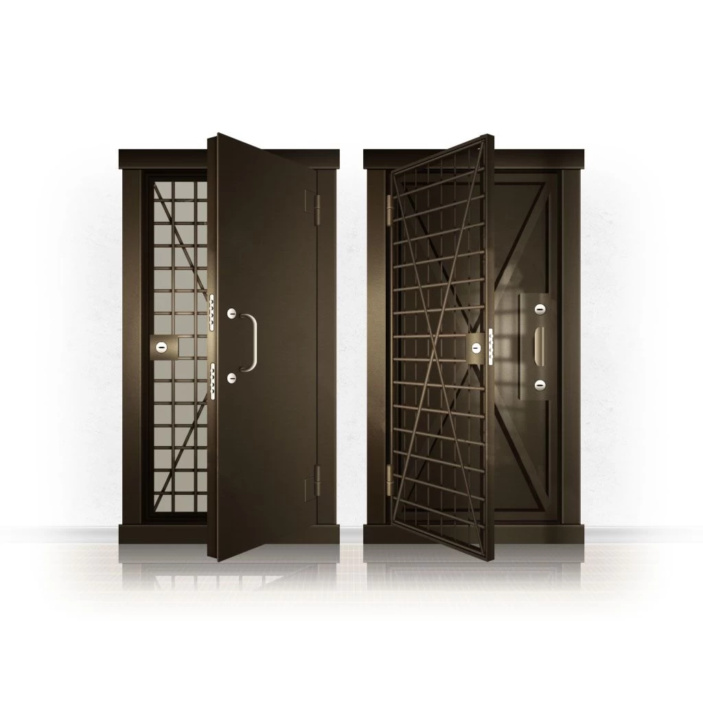 Металлические двери КХО и КХН представляют собой входные блоки, обладающие высоким уровнем взломостойкости и состоят из трех основных элементов: усиленного каркаса, сплошного металлического полотна и решетчатой двери. Дверной блок изготавливается из стального уголка 100*100 мм. Места крепления блока к стене цементируются и закрываются стальными наличниками шириной 40 мм. Крепеж заходит вглубь стены на 80 мм. В конструкции внешней створки монтируются ребра жесткости, для обшивки используется сталь толщиной не менее 3 мм. Внутренняя решетка изготавливается из прутка диаметром 16 мм. Размер ячеек решетки должен составлять не более 15 на 15 см. В точках пересечения прутья надежно приваривают друг к другу. В КХО и КХН необходимо поддерживать определенную температуру и влажность. Для этого внутреннее пространство глухой двери заполняется теплоизоляционным материалом, а по периметру двери приклеивается уплотнитель. Такие двери оборудуются замками с повышенным уровнем взломостойкости. Специализированные двери КХО и КХН в Кизляре могут быть оснащены сигнализацией, в конструкции могут быть проушины для навесного замка и элементами для опечатывания. Если идет речь о двери в комнату хранения оружия, в створке оборудуется окно для выдачи оружия и спец. средств, которое накрывается стальной дверцей.