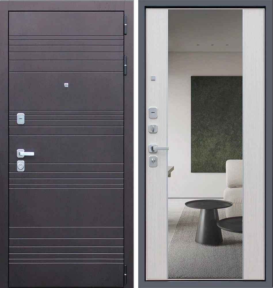 Надежная входная Дверь Дуэт с зеркалом премиум класса по цене 47 510 руб. Большая толщина стали защитит от проникновения в ваш дом, квартиру или коттедж. Используется очень качественная фурнитура: замки, цилиндры, ручки, защелки. Покрытие и отделка двери изготовлено под внимательным контролем производителя. Дверь имеет долгий срок службы и гарантию.